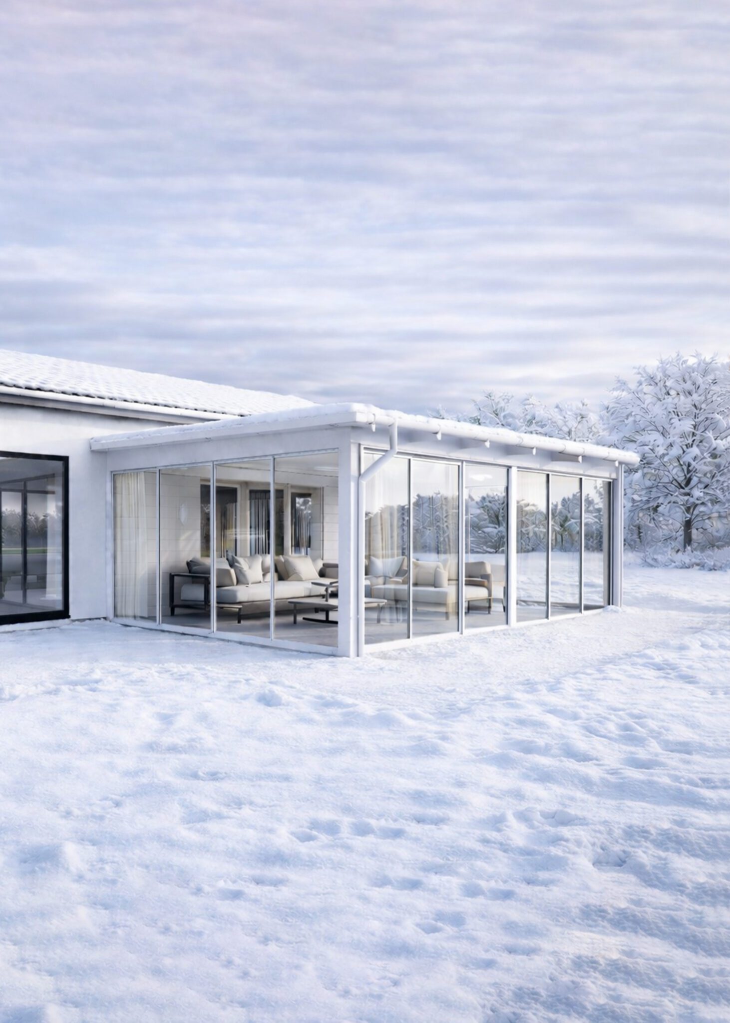 Halle Thermo, 2-glass, gir deg muligheten til å skape en prisgunstig, stilren og funksjonell vinterhage – en utestue du kan nyte året rundt, der du kan slappe av uansett årstid og vær. Opplev alle dager i utestuen din og se hvordan naturen skifter gjennom de ulike årstidene