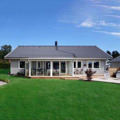 For husfasade anbefales Halle Fasade eller for eksempel Halle Foldepati Fasade