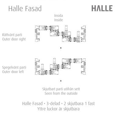 Halle Fasad leveres som standard med hvite aluminiumprofiler, RAL 9010ps.