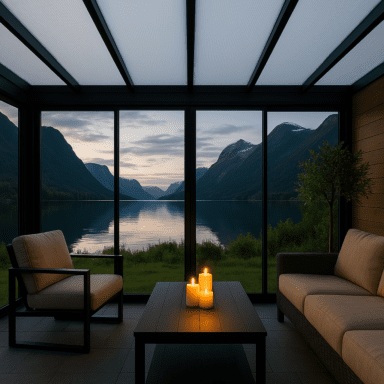 Hagestuepartierne er Halle Primolux som er et enkelt glass system. Glasset U-verdi er 5,7 og glasset er et herdet 5 mm sikkerhetsglass. Primolux levereras med hvitlakkert aluminiumprofiler.