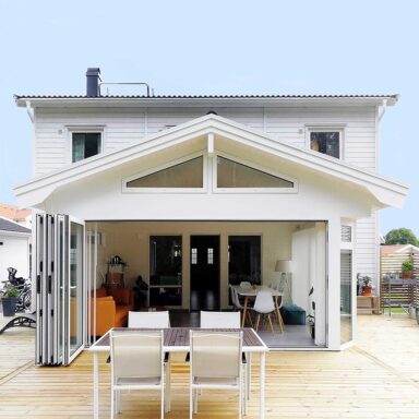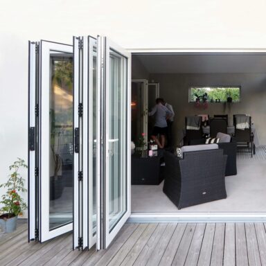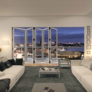 Halle Foldeparti har brutt kald bro i både dører og ramme for best tetthet og U-verdi, og produseres med 2-glass eller 3-glass, sikkerhetsglass med energi og argon.