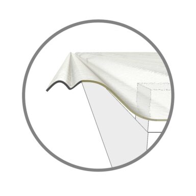 Platen er beskyttet med en overflatefolie med en ekstremt høy UV-beskyttelsesfaktor, noe som gjør taket slitesterkt og lett å holde rent – et trygt og sikkert valg! De gode mekaniske egenskapene og lysgjennomgangsevnen gjør at materialet i den glassfiberarmerte platen holder seg pent år etter år. Derfor kan vi gi en garanti på 15 år uten problemer.
