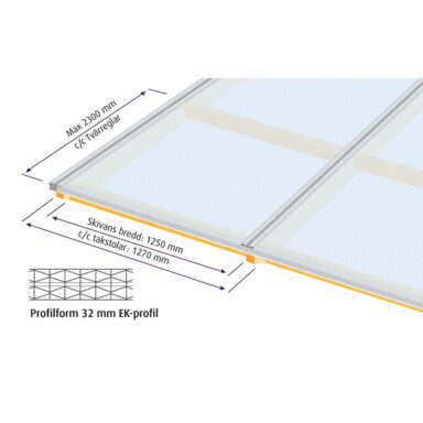 Kanalplasttak i ferdige dimensjoner, komplett med plastplater, profiler og alt monteringstilbehør. Taket er enkelt å kutte og montere. 32 mm Isolux er tilpasset hovedsakelig for bruk året rundt, velg mellom Klar og Opal board for vinterhustaket og baldakin.