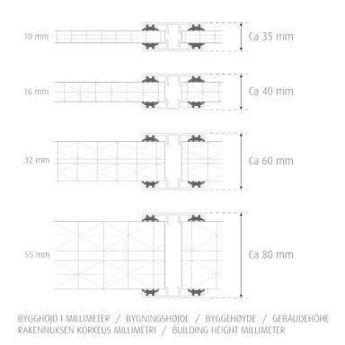 • Velg konstruksjonsbredde mellom 2592 mm – 15292 mm inkludert profiler